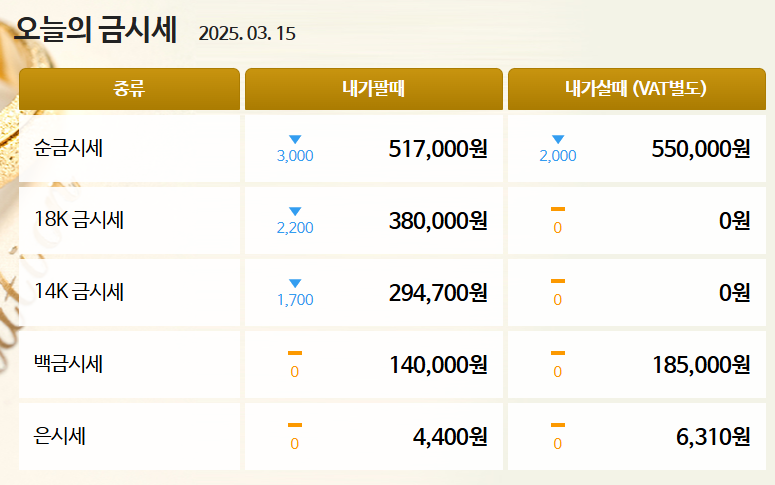 오늘 금값시세 1돈팔때, 금시세 1돈내가팔때