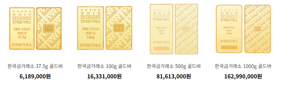 한국금거래소의 순금나라 웹사이트에서는 다양한 중량의 골드바를 판매하고 있습니다.